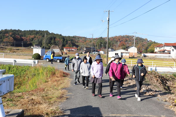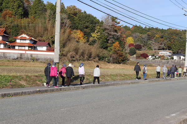 しっかりと準備運動をしてから黒郷の約3kmのコースを40名の参加者が、健康づくりと親睦を深めながら歩きました。
